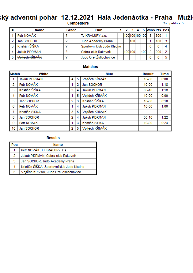 Pražský adventní pohár 12.12.2021 Hala Jedenáctka - Praha