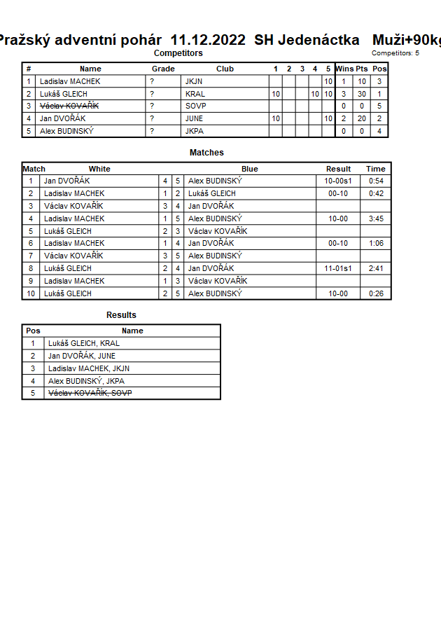 Pražský adventní pohár 11.12.2022 SH Jedenáctka